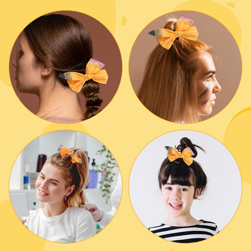 - 【Non-slip and Stable】The teacher's hair bow clip for school is completely solid, well made and won't fall off. Yellow pencil alligator clip has strong grip, light weight and safety. The hairpin will not damage the women‘s hair and can save time to take care of her hairstyle.