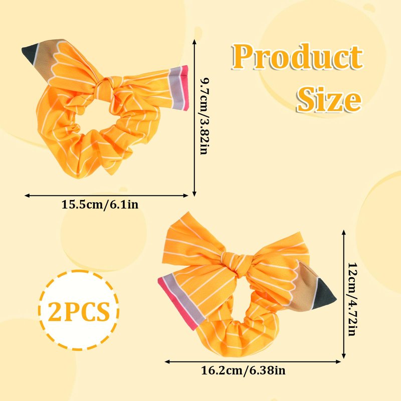 - 【Teacher Pencil Scrunchies】You will get 2 pieces of school supplies for teachers hair ties elastic ponytail holder yellow hair scrunchies, unique, and interesting. These cute hair scarf scrunchie hair ties for women are soft and elastic, no matter your hair type is thick, thin, curly, or straight hair will definitely fit our product.Suitable for elegant and delicate female friends.
