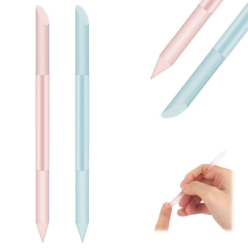 Giantree Glass Cuticle Pusher, 2 Pcs Nail Cuticle Remover Tool, Double Head Nail File Manicure Cuticle Stick Women Professional Cuticle Glass Polisher for Natural Nails Cuticles Care(Light blue+Pink)
