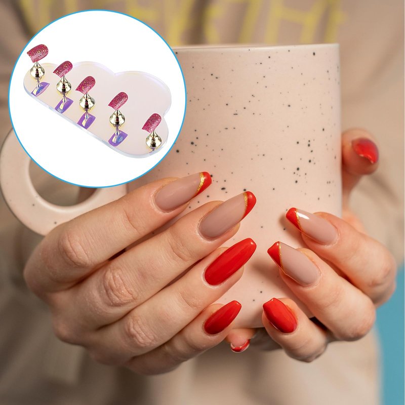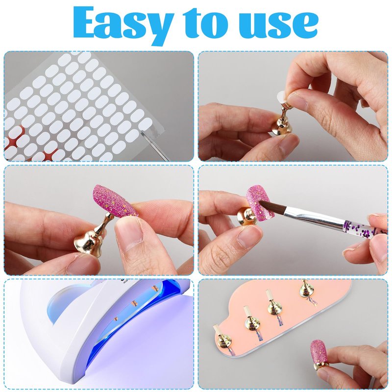 - 【Easy to Use】 This product makes nail design so easy. Use the nail holder for painting nails to do the false nail designs first on the press-on stands and then use nail glue to attach them to your nails. Curing them in the nail lamp after ensures that they stick firmly for a long time