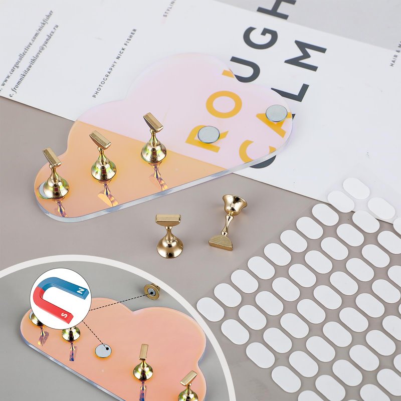 - 【Value Package】you will receive 1 set cloud-shape nail stand, 5 pcs gold nail tips and 200 pcs clear reusable adhesive putty, adequate enough for your daily nail art practice