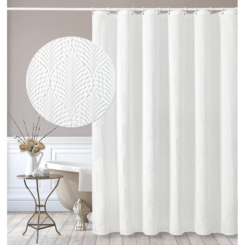 - 【PREMIUM QUALITY】Made of 100% polyester fabric, our shower curtain is skin-friendly, wrinkle free, soft hand feel, drapes beautifully. Double layers construction make the embossed texture last for a long time and better protect your privacy.