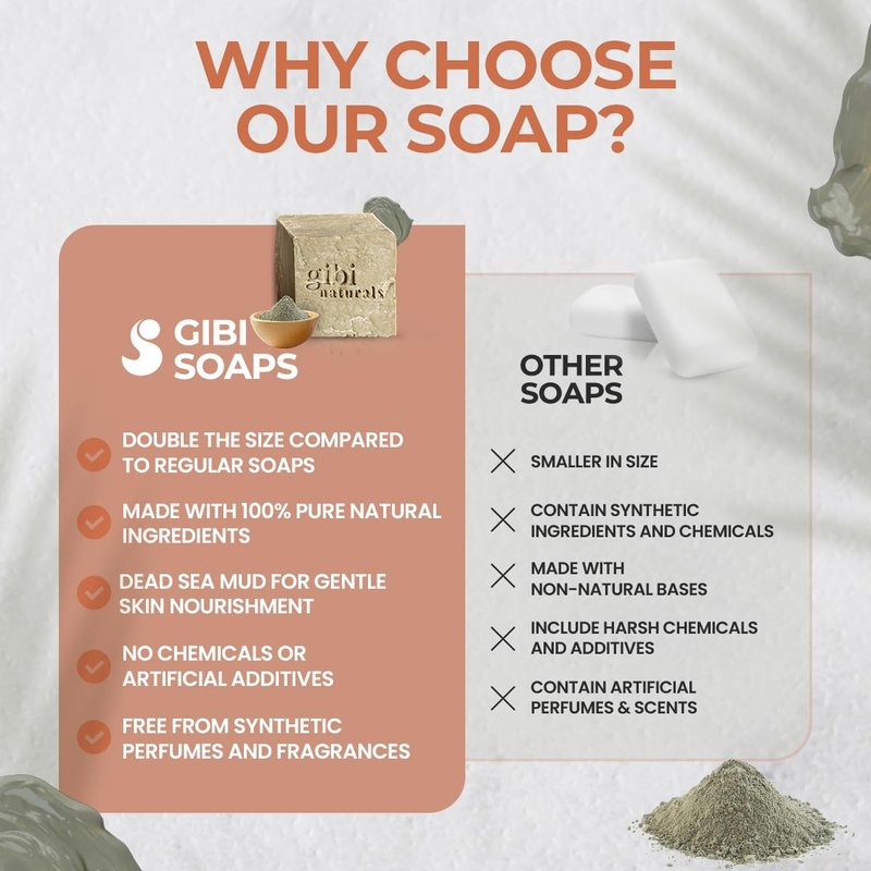 - ππ π ππππππ πππππππππ: GIBI Dead Sea Mud Soap offers a thorough cleanse with natural Dead Sea salts, removing impurities and leaving your skin feeling fresh and revitalized.