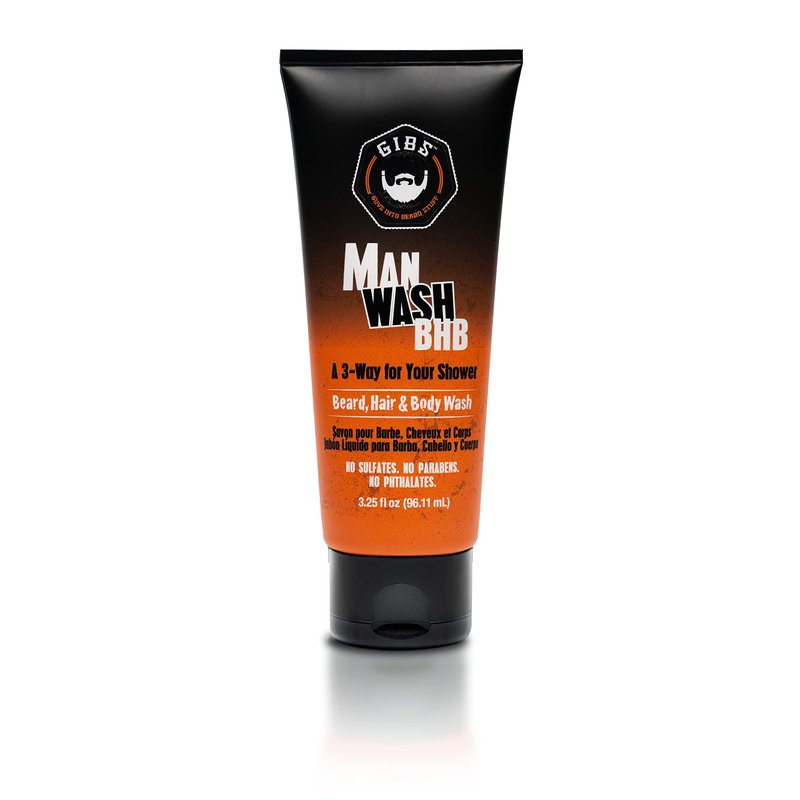 GIBS Grooming 3 in 1 Man Wash Body Wash for Men - Beard & Hair Moisturizing, & Cleansing Liquid Body Wash - Sulfate & Paraben Free - 3.25oz Travel Size