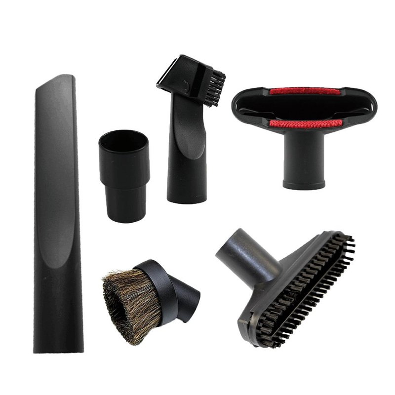 6 pieces vacuum cleaner attachements accessory kit includes crevice tool, horsehair bristles round brush, utility nozzle with brush, upholstery tool, brush & nozzle combination tool, and 35mm(1 3/8inch) to 32mm (1 1/4 inch) adapter.