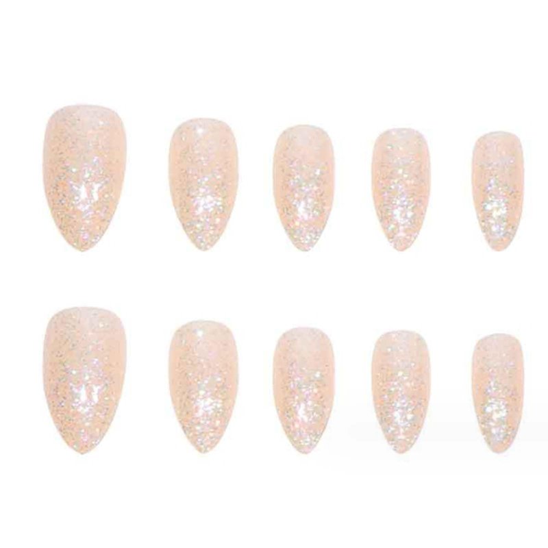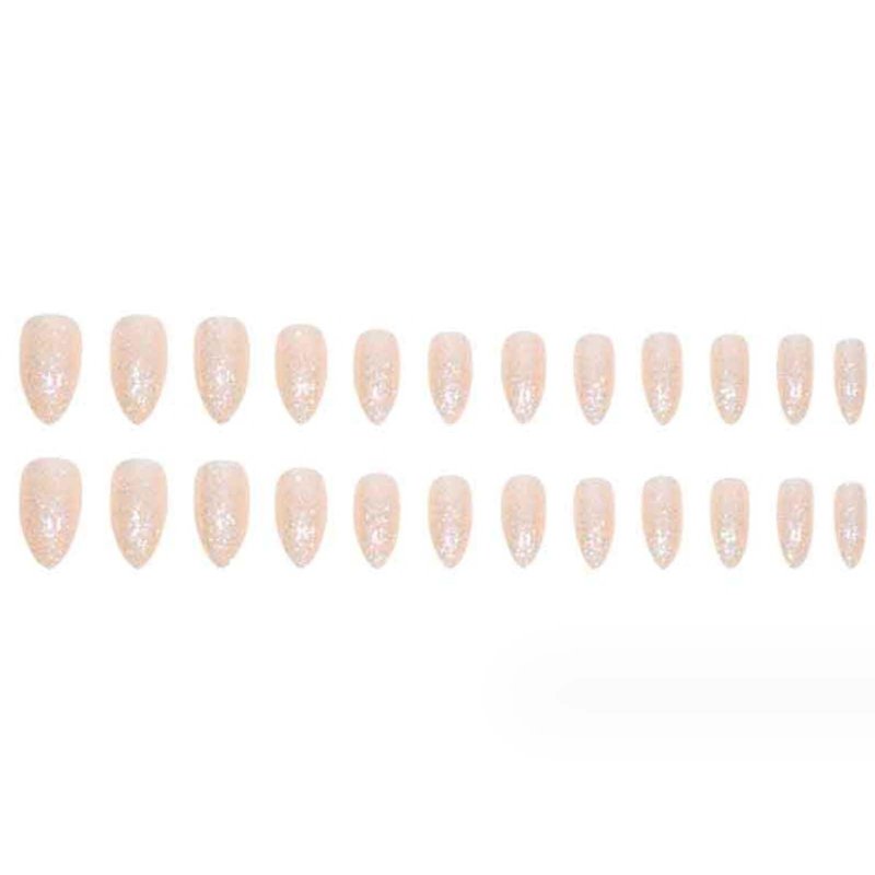 Gifiky Short False Nails Almond Press on Nails Bling Nails Tips Full Cover Ballerina Fake Nails for Women and Girls 24Pcs
