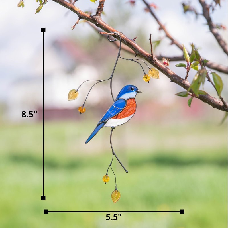 Gift Birds Handmade Stained Glass Suncatcher Genuine Stained Glass Window Hangings Unique Indoor Ornament & Outdoor Decor (BLUEBIRD)