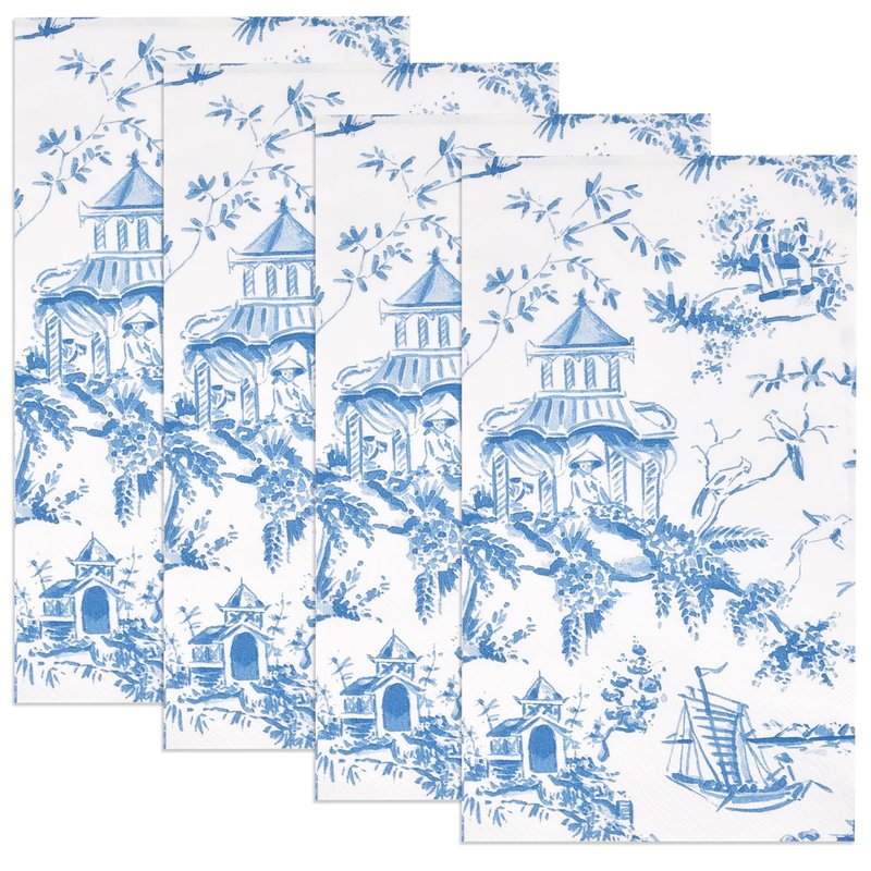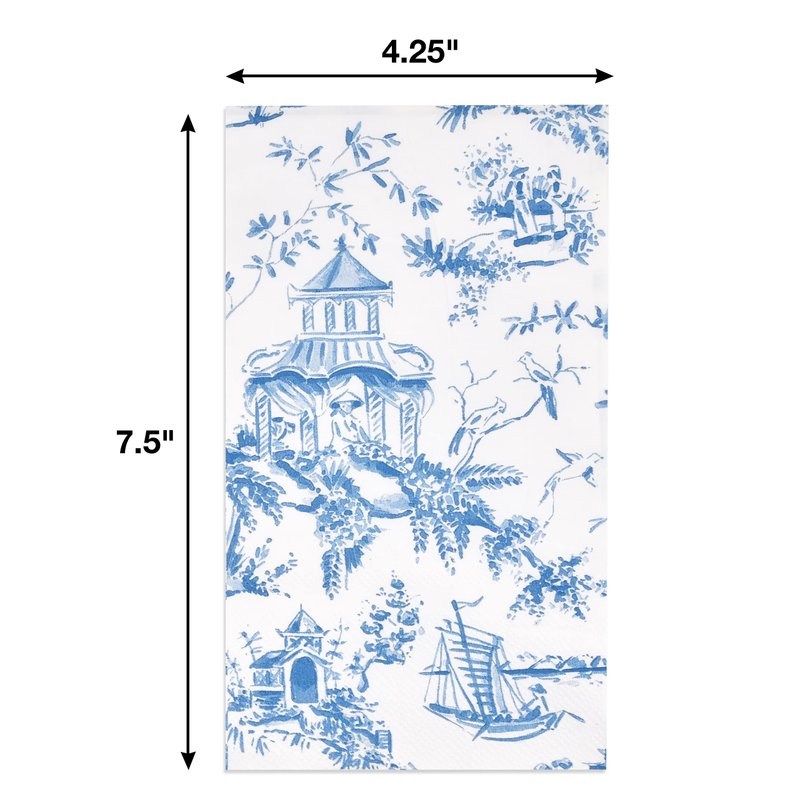 - Tuscan Guest Napkins: Gift Boutique set of 100 Tuscan guest napkins features blue Pagoda with flowers design on a white background! These napkins will definitely enhance your table and impress your guests. Measurements: 7.5" x 4.25" folded and 15" x 12.75" unfolded.
