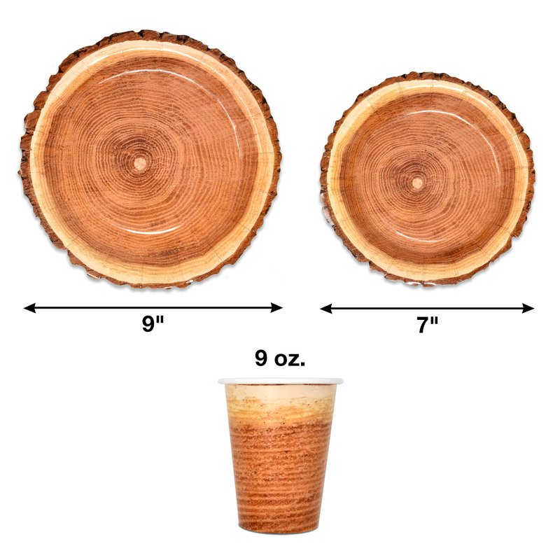 Gift Boutique Rustic Wood Slice Paper Party Supplies Tableware Set 24 9" Plates 24 7" Plate 24 9 Oz Cups 24 Lunch Napkins for Lumberjack Woodland Timber Wood Slice Camping Hunting Baby Shower Decor