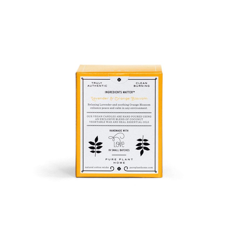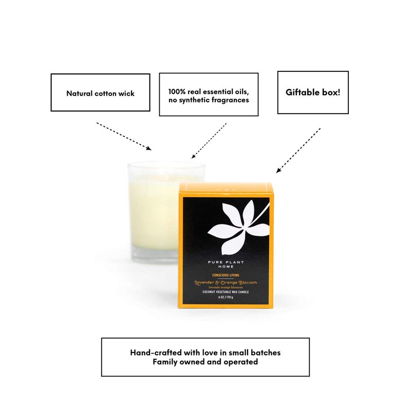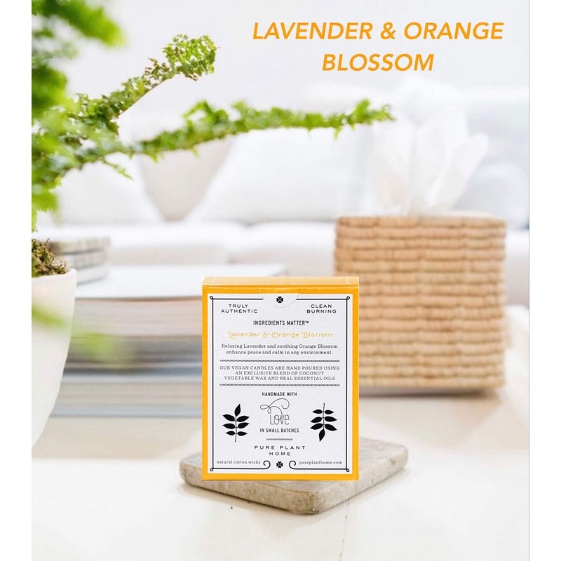 - PURE PLANT ESSENTIAL OILS - Our exclusive coconut wax blend with real steam distilled and cold pressed essential oils of Lavender & Orange Blossom.