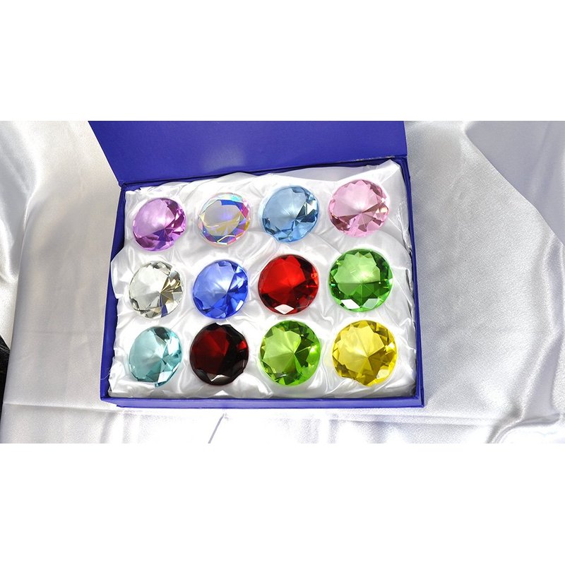 Gift Box Set 12 Beautiful Birthstones Paperweight Glass Diamond 60mm