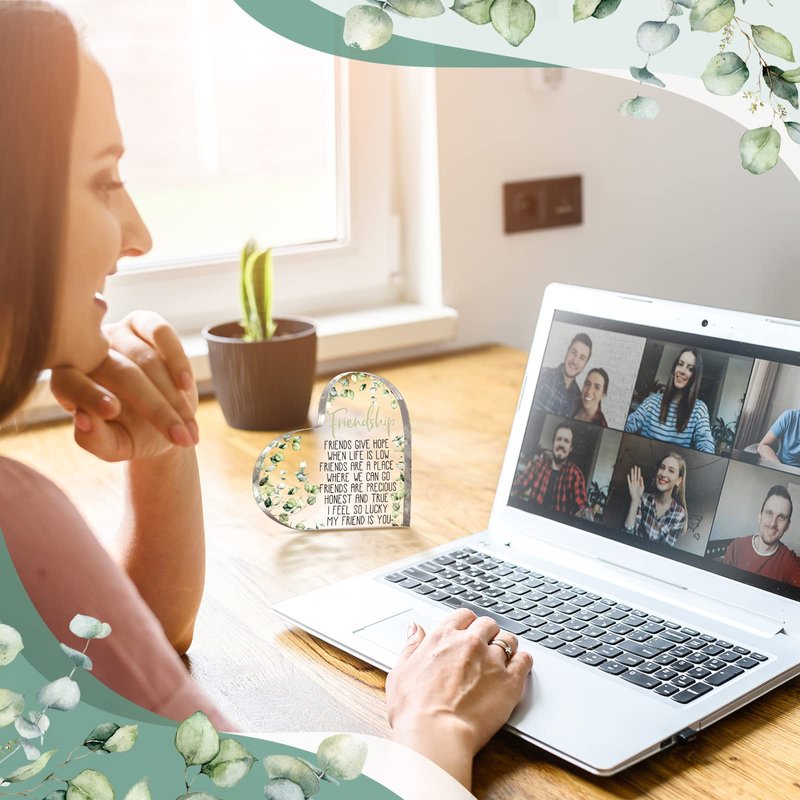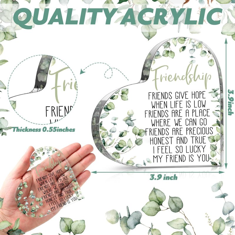 Gift for Friend Friendship Gifts for Women Friend Friendship Birthday Gifts for Women Cheer up Gift Acrylic Heart Keepsake and Paperweight for Home Office Table Shelf (Eucalyptus)
