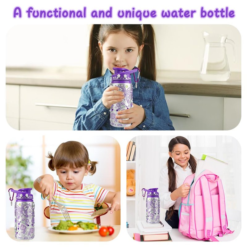 - 【DIY Crafts & Arts】Decorate your own water bottle for girls! Keep kids busy with a simple arts and crafts activity they will enjoy: Peel the glitter gem stickers and stick them onto the water bottle! Let the kids use their unique imagination!