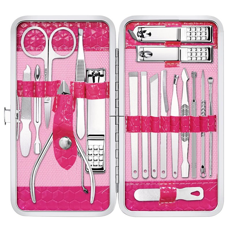 Gift for Women/Men,Nail Care kit Manicure Grooming Set with Travel Case - Yougai 18 Piece Stainless Steel Manicure Kit (Pink)…