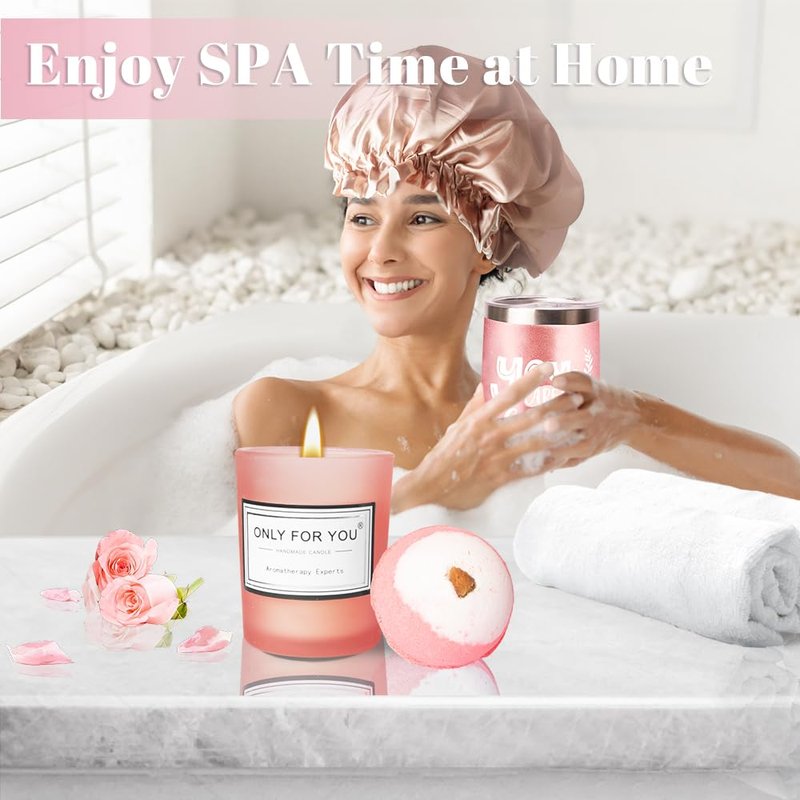 Gift Set for Woman,Silk Bonnet Included Birthday Gifts for Woman, Relaxing Spa Self Care Gift for Woman, Thinking of You Pink Gifts for Women, Her, Friends, Mom, Sister, Wife