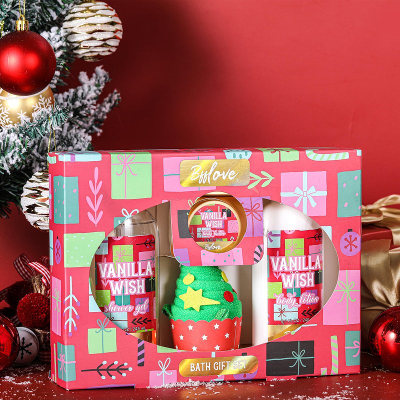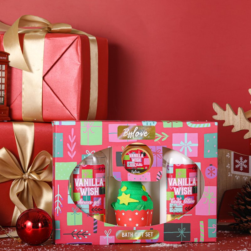- The Valentine's Day gifts includes - 1 x Shower Gel, 1 x Body Lotion, 1 x Body Butter, 1 x Mini Tree Towel.