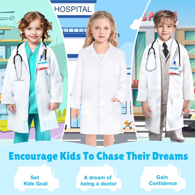 - Endless Fun for Role Play - This kids doctor costume is great for Halloween costumes for kids, role-play games, career day costume for kids, Birthday parties or Hospital Theme Parties, etc. And kids doctor kit is an excellent gift for a small child that likes pretend to be a doctor, or scientist. Helps your little ones develop healthy habits. It’s a perfect Halloween costumes for toddler girls boys and all kids.
