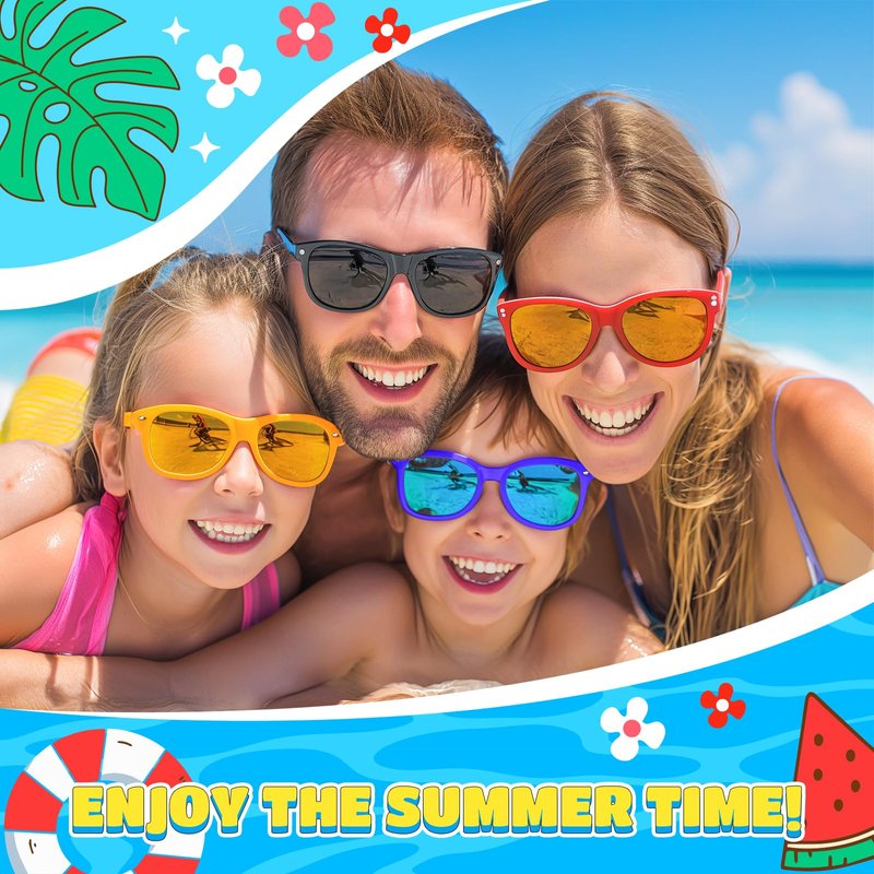 - 【Perfect Party Favors for Kids】- These party sunglasses are great for any occasion, like pool and beach party, birthday party, End of school year gifts, goodie bag stuffers, music festival, concert, travel, carnivals, weddings and other outdoor activities. Tuck these kids sunglasses bulk into treat boxes, goodie bags, or give them out as party favors or rewards, the kids will absolutely love them!