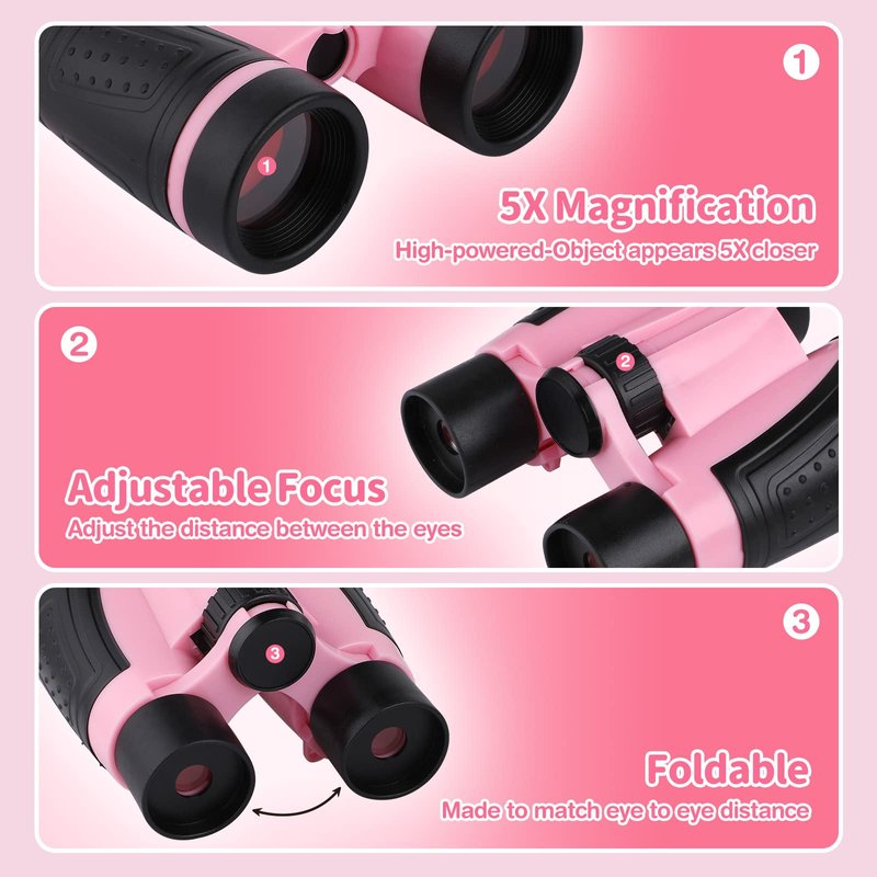- 【What You Will Get】-Full Kids Exploration and Adventure Set include :Pink Hat, Telescopic Butterfly Net and A Pop-up Butterfly Habitat Cage, Binocular , Magnifying Glass, Whistle, Bug Collector with Magnifier, Tweezers, Bug Tong, 1 pack fake insects and a backpack to carry all the things.
