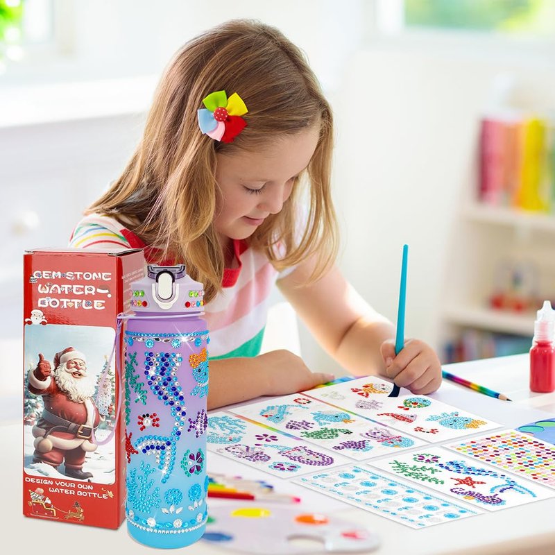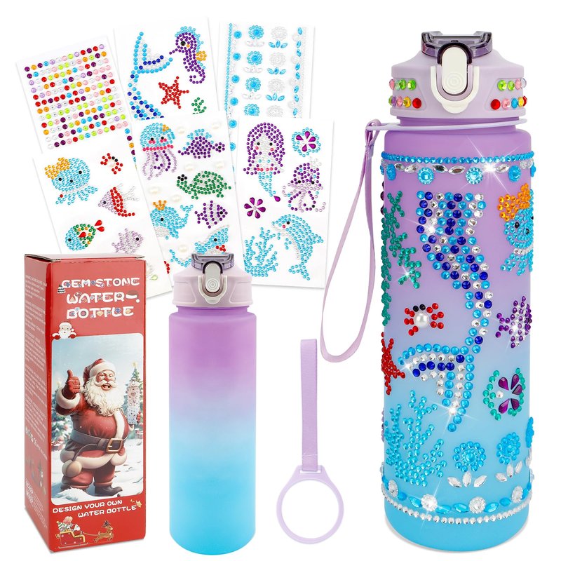 - DIY water bottle craft kit: You will get a DIY water bottle kit that you can decorate yourself, which includes a 750ml plastic purple-blue gradient water bottle, 6 sheets of different types of diamond stickers. Our reusable water bottle is packaged in a colorful Christmas gift box and make great Christmas gifts for little girls