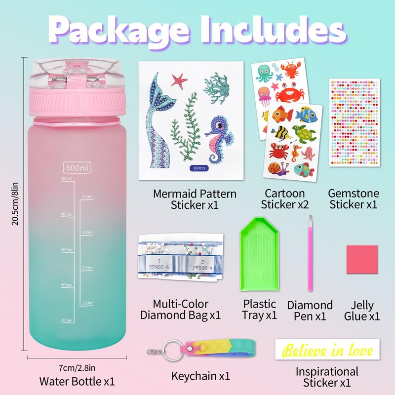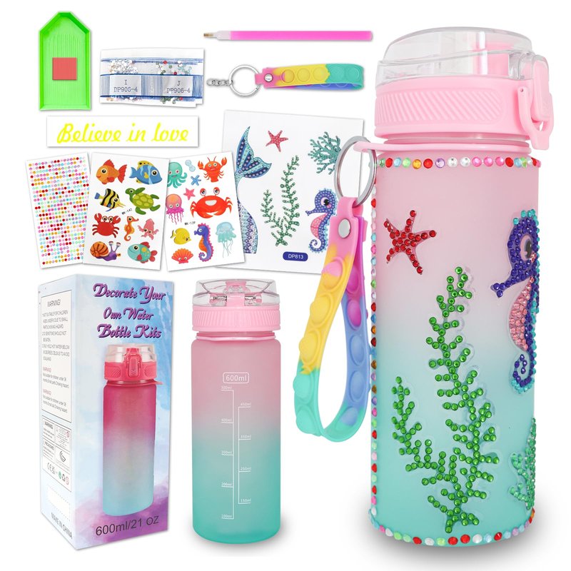 - Decorate Water Bottle for Kids:Our DIY Water Bottle Kits feature themes that little girls love, including unicorns and mermaids.The kit includes vibrant and sparkling diamond stickers that add a touch of glamour to the water bottle designs. Let your child's creativity shine with these eye-catching decorations,and provide them with hours of happy time.