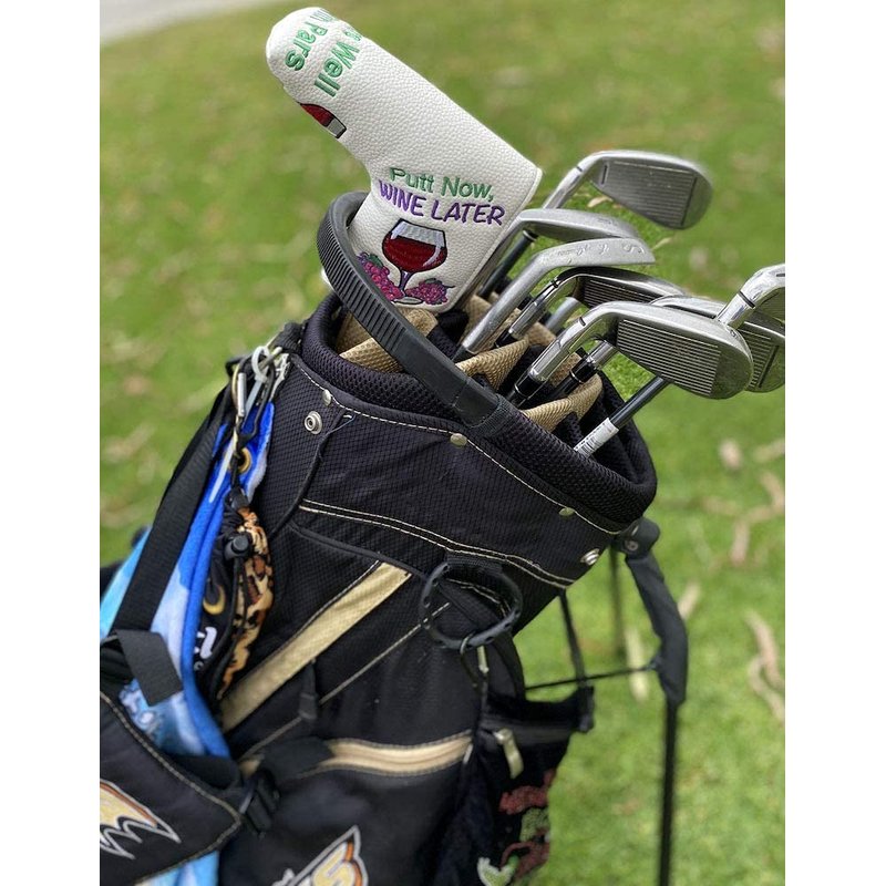Giggle Golf Blade Putter Cover | Golf Bag Accessory | Great Golf Gift for Women & Men (Putt Now, Wine Later)
