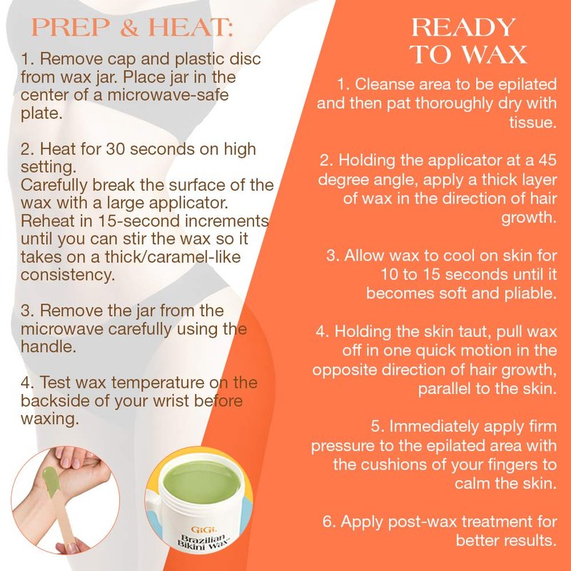 - DESIGNED FOR DELICATE AREAS AND BRAZILIAN WAXING: Used by the most prestigious waxing salons worldwide, the GiGi Brazilian Bikini Wax Microwave Formula can be used in small areas like underarms, bikini area, and other delicate zones; The depilatory wax warms the skin, relaxes the skin pores, and is extremely flexible and less sticky, plus it is excellent for stubborn hair, along with a finer regrowth and less redness, so hair removal is easier and more thorough