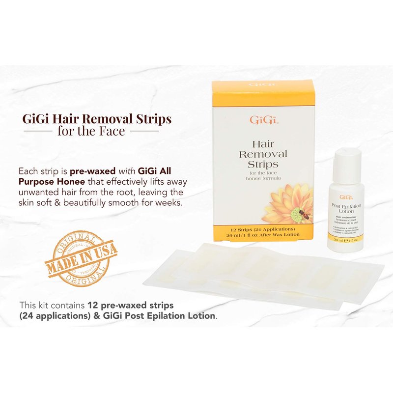 GiGi Hair Removal Strips | For the Face | Pre-Waxed with GiGi All-Purpose Honee Formula, 12 Strips