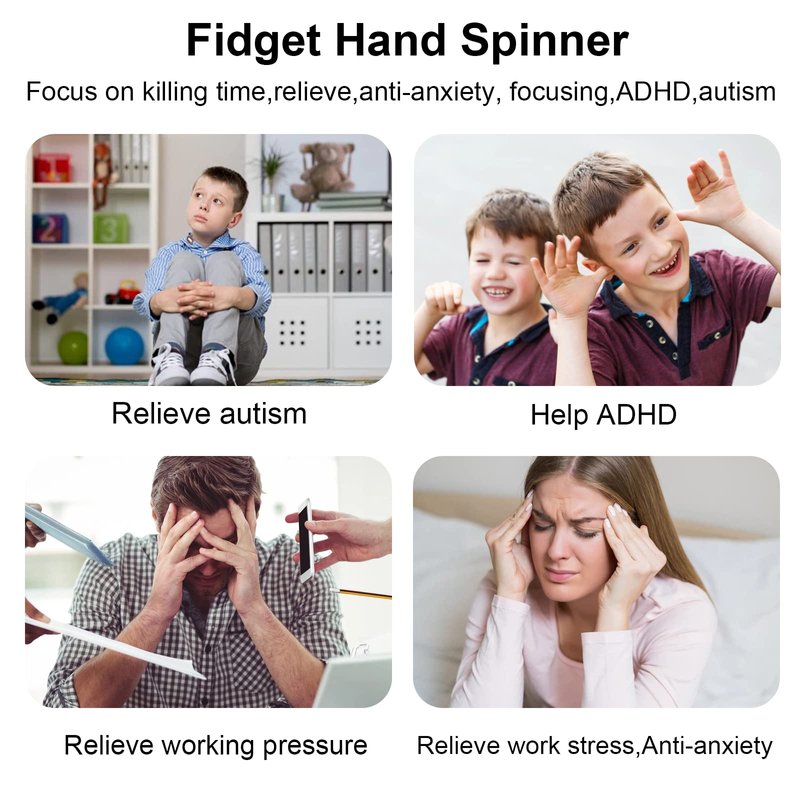 - 【Stress Relief Fidget Toy】 This light up fidget spinner for kids toy is a perfect stress reducer for kids and adults, also is a great fidget toys for fidgeters who have ADHD, autism, anxiety, and stress. Be no more uncomfortable, nervous or anxious!Smart choice for the office, commuting, college, in class, studying, home, in a meeting or watching TV and travel.