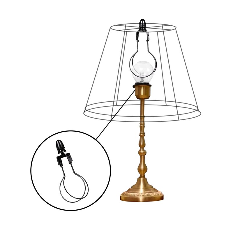 - Simple And Easy To Use - Ingenious adapter for a lamp without harp.Simple lampshade attachment,mounts directly on a light bulb and lampshade goes on top.There is no need to measure the harp and figure out how much of the lamp shade will cover.