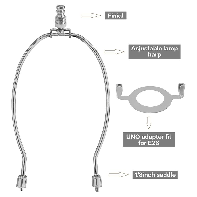 GIGIVOSHA Lamp Shade Harps Holder Adjustable Kit - 8 9 10 Inch with E26 UNO Light Base Set Lampshades parts for Table and Floor Lamps finials Bracket Light Fitting - 2 Pack (Nickel, 8 Inch)