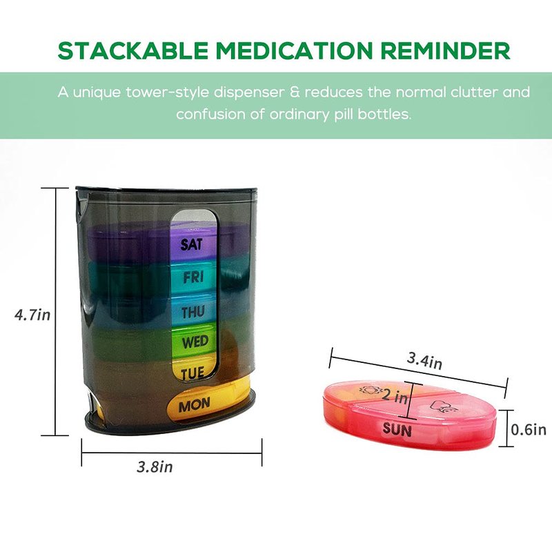 - COMPACT & PORTABLE - Due to its lightweight and compact shape, it's a perfect dispenser for carrying your supplements and pills while travelling.When stacked, the complete pill manager dispenser is about the size of a soda can without taking up too much space in the bag you carry with you.