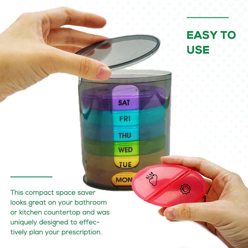 - EXTRAORDINARY WEEKLY PILL ORGANIZER - This unique twice-a-day weekly pill manager is designed to store a large number of pills and vitamins of various sizes and shapes in one place. This makes it easy to manage your weekly medicine prescriptions.