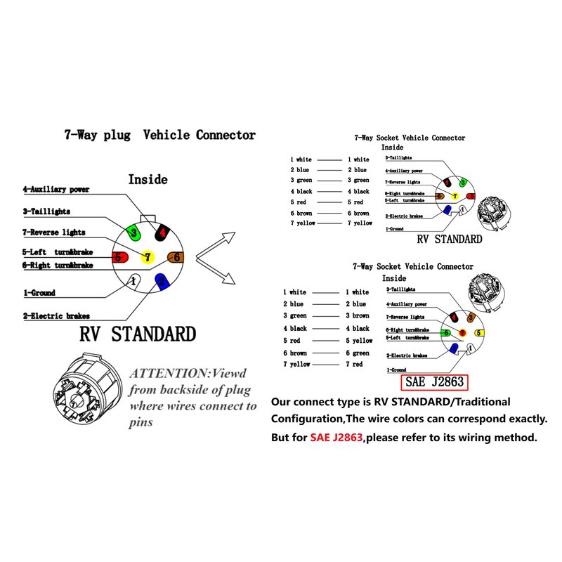 - EXCELLENT CONSTRUCTION:This trailer 7 pin wiring harness use premium double prongs to replace poor single prong, adopt solid copper cord, stronger and rugged, brass terminal ensure a solid connection, comes ready to splice into your existing trailer wiring. This 7 pin trailer extension can be used to connect the taillights, brake lights, reverse lights, turn signal.