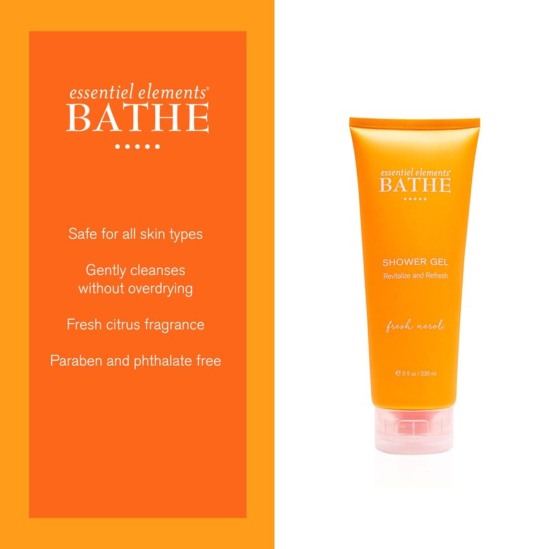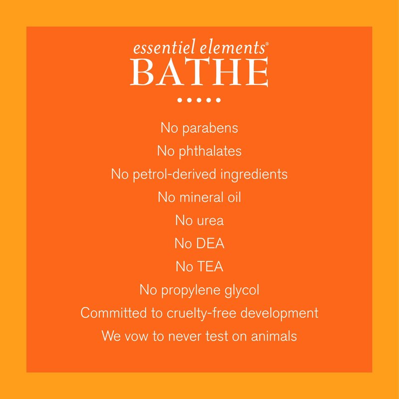 With its revitalizing orange blossom fragrance, punchy citrus palette, and stylish packaging, Essentiel Elements Bathe is a tonic for the senses. Expertly blended fresh citrus notes of orange blossom, bergamot, grapefruit, and mandarin create an invigorating and uplifting fragrance while extracts of while Vitamins C and E are rich in antioxidants. Safe for all skin types Gently cleanses without overdrying Fresh citrus fragrance Paraben and phthalate free The Essentiel Elements� Bathe Collection features the Gilchrist & Soames� Signature Formulations, which contain no parabens, phthalates, petrol-derived ingredients, mineral oil, urea, DEA, TEA or propylene glycol. They do contain food-grade, naturally derived USP glycerin and natural conditioning agents from honey and the brassica plant. We�re also committed to cruelty-free development and vow to never test our products on animals.