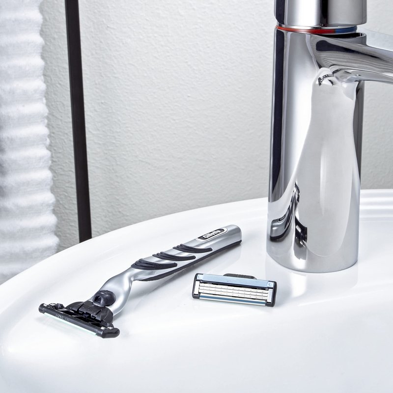 - STRONGER-THAN-STEEL razor blades that stay sharper longer (vs Sensor3)