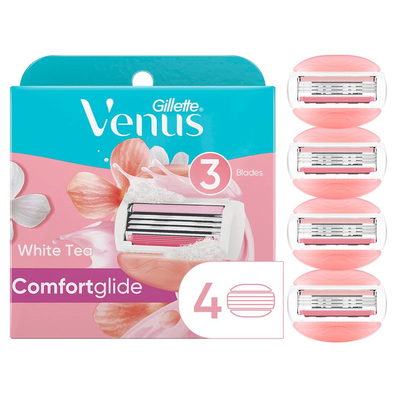 Gillette Venus ComfortGlide Womens Razor Blade Refills, 4 Count, White Tea Scented Gel Bar Protects Against Skin Irritation