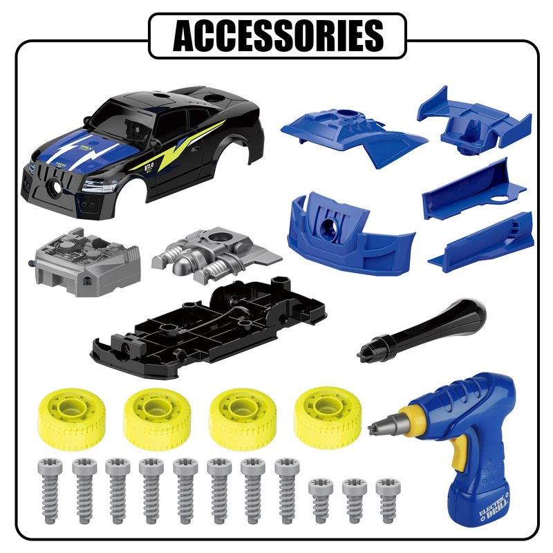 - Young Engineers: The 26 pieces assembly racing car toy comes with drill, tires, screws and car parts, allow kid to assemble, take apart, reassemble, fix and repair, and they can build it on their own hands and then play with it.
