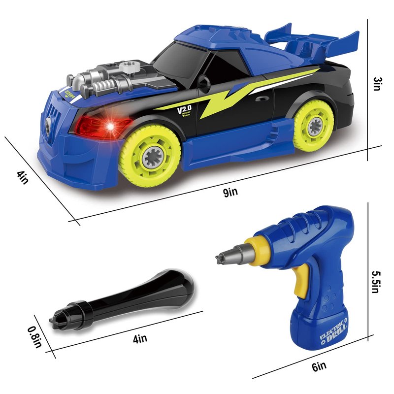 - Realistic Design: Once the take apart car toy is assembled successfully, the racing car headlights will light up and car sounds will play when you press the hood down, you can turn it off as needed, bring your kids a fully immersive driving experience.