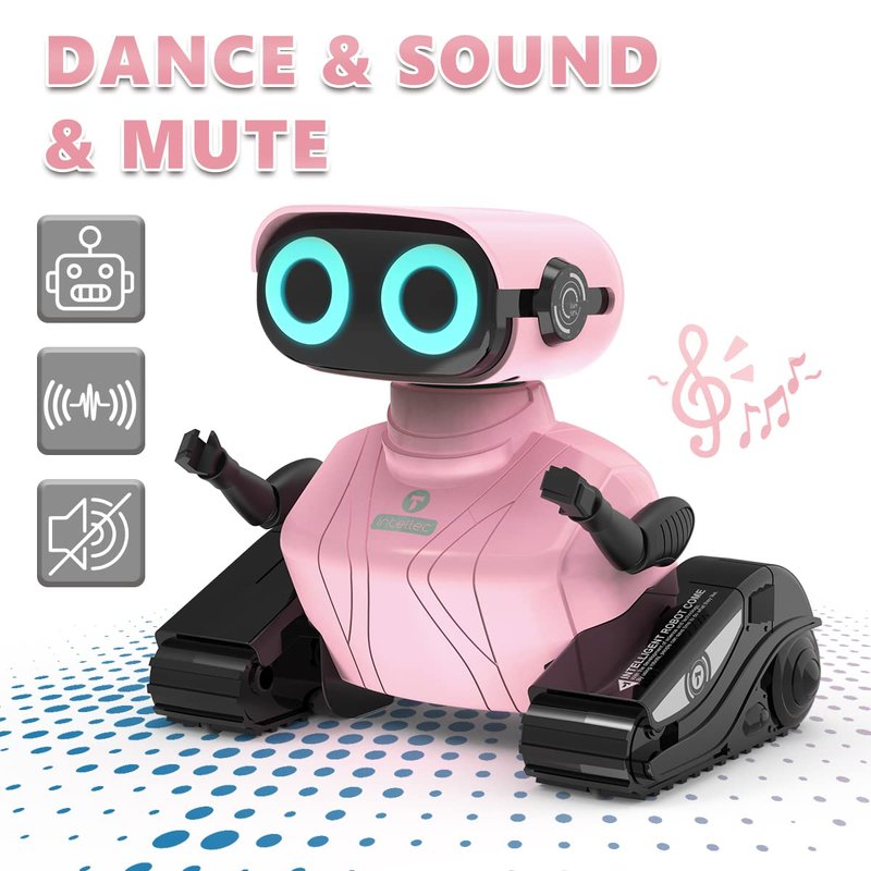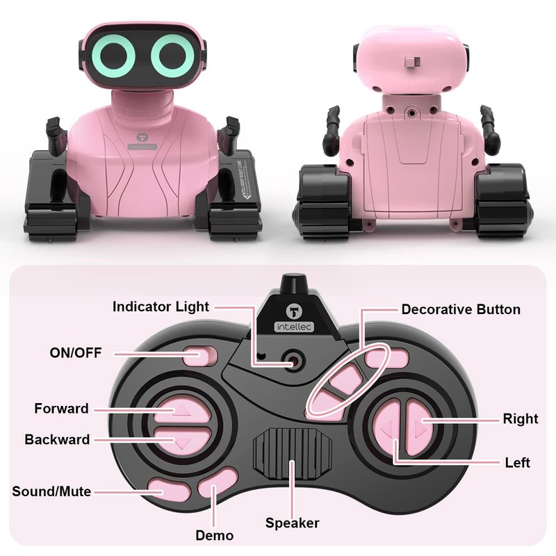 - Unique Design: The robot toy is design in 2 part. The upper part is a cute robot with LED eyes and flexible arms, which can make different postures. The bottom part is tank tracks, which can slide left and right and rotate 360° in place.