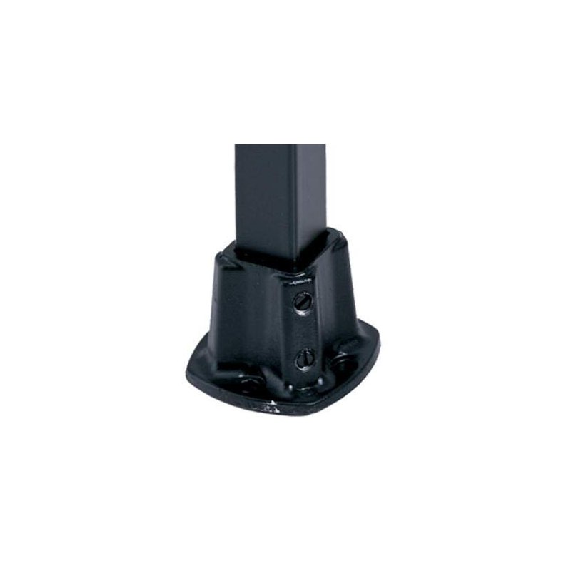 Product is manufactured by Gilpin, Inc. 1" Black Floor Flange Uses set screw to hold railing in place