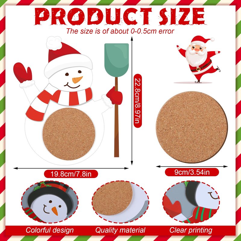 - Material and Precise Size: our Christmas snowman craft kit is made of paper and cork stickers to ensure that the coaster is reliable and insulated; Each winter coaster in the kit measures approximately 3.54 x 3.54 x 0.12 inches/ 9 x 9 x 0.3 cm, suitable for most household cups, providing you with practical coasters