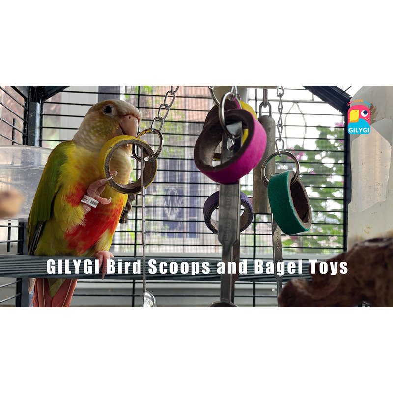 GILYGI Durable Bird Parrots Scoops and Bagel Toys, Pullable Stainless Steel Spoon and Cardboard Ring Toys for Small and Medium Bird Parakeets, Cockatiels, Conures, Budgie, Lovebirds, Finches