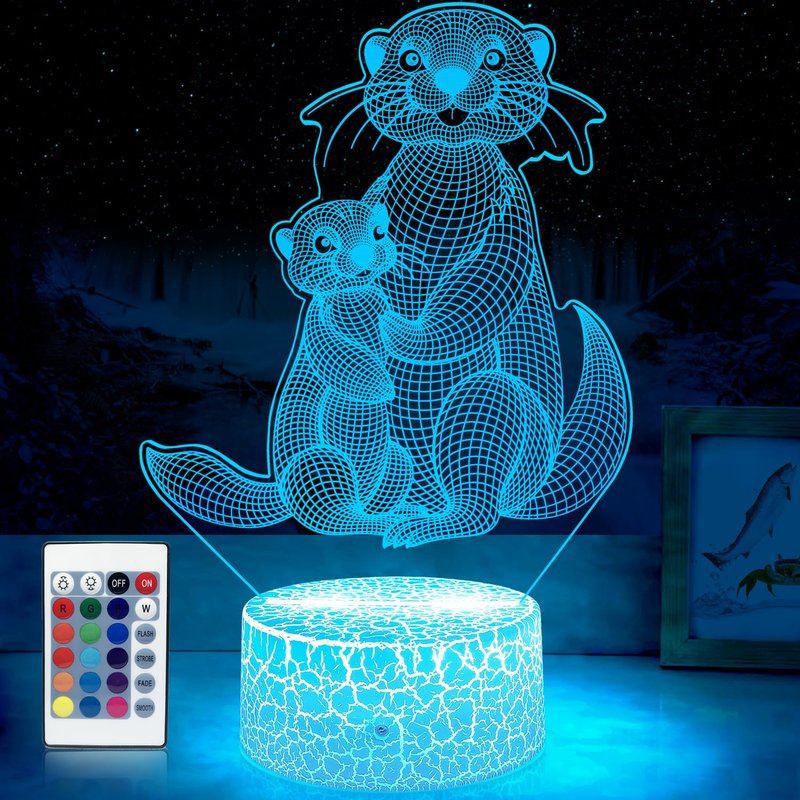- ✨Adorable Otter Night Light:16 Colors Changing ,Different options for colors,You can choose a color or an automatic transformation mode all of theman optical Acrylic flat board with laser engraving can give you kids amazing visual effect.