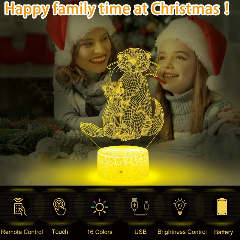 GIMFRY Otter Night Lights Otter Gifts for Kids 16 Colors Changing with Remote&Touch otter lamp for girls bedroom 3D Illusion Lamp As Christmas Birthday Gifts for 2 3 4 5 6 7 8 year old Girls