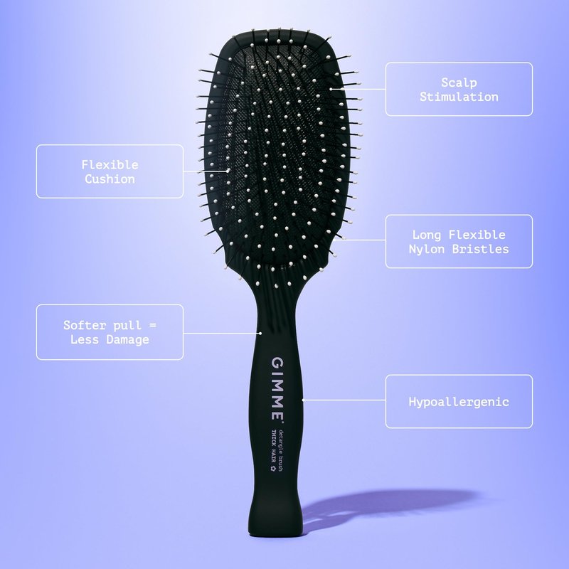 Gimme Beauty - Thick Hair Brush - Damage-Free Detangling Hair Brush with Anti-Static & Heat Resistant Nylon Bristles - Paddle Brush for Curly + Thick Hair