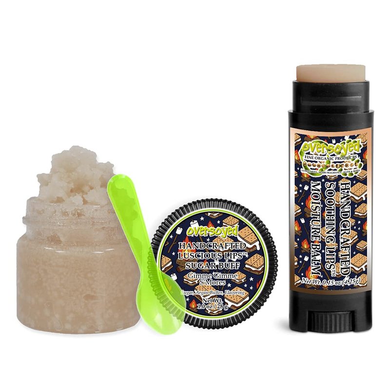 Gimme Gimme S'Mores Soothing & Luscious Lips by OverSoyed Exfoliator & Chapped Lip Repair Lip Care Combo | Artisan Handcrafted to Order Toasted Marshmallow Chocolate Graham Cracker Flavored Exfoliating Sugar Lip Scrub & Lip Moisturizer Balm Gift Set