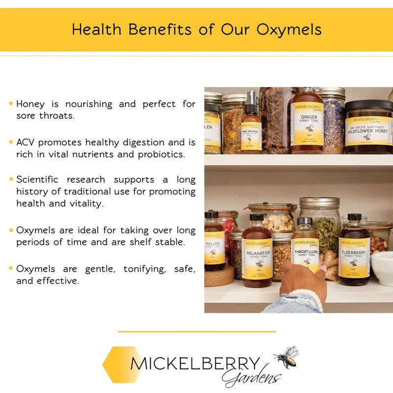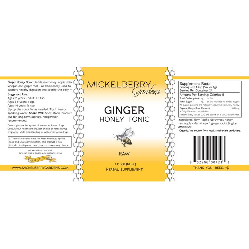 - A traditional oxymel formula designed to support digestive health, our Mickelberry Gardens Ginger Honey Tonic provides soothing natural relief with the healing power of certified-organic ginger root (Zingiber officinale) .