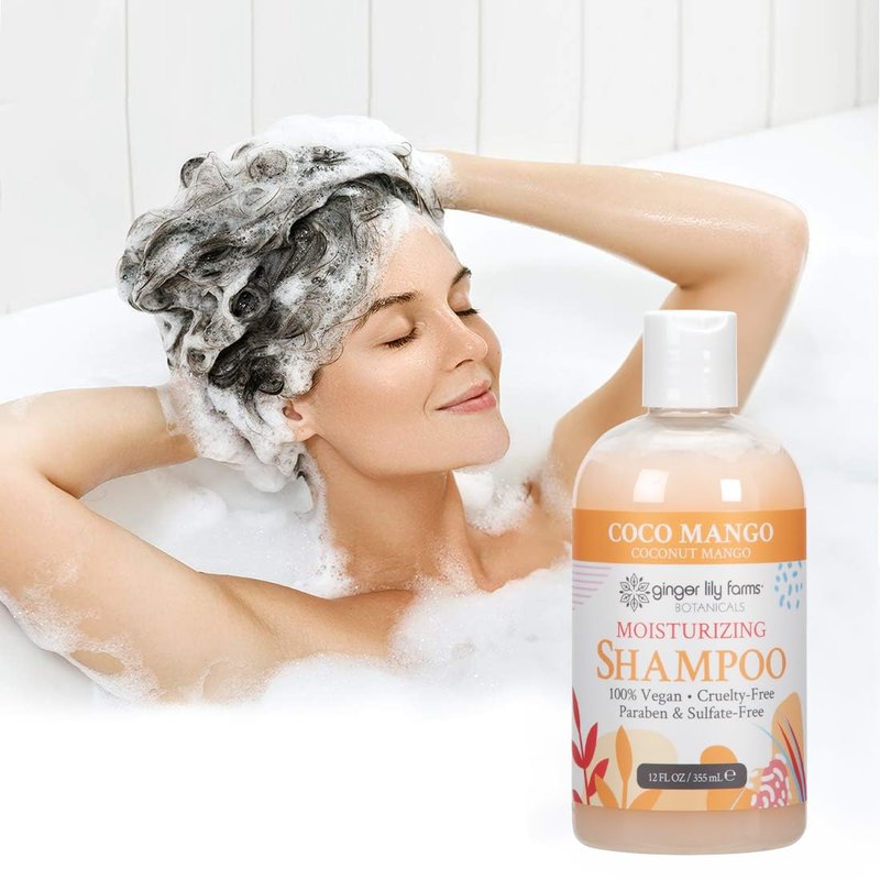Ginger Lily Farms Botanicals Moisturizing Shampoo for All Hair Types, Coco Mango, 100% Vegan & Cruelty-Free, Coconut Mango Scent, 12 Fl Oz