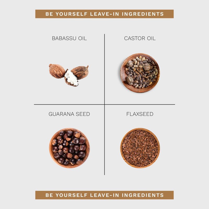 Imagine having a magic wand for your curls - that's what our Be Yourself Leave-In Conditioner offers! Infused with castor oil for strength and babassu oil for hydration, it's your ticket to vibrant, lively curls. Flaxseed tames frizz, while murumuru butter, jojoba, shea butter, guarana, and nettle extract nourish and revive your curls. This magical potion instantly defines, manages, and invigorates your curls, leaving them looking luscious and full of life. Say goodbye to dull, lifeless curls and hello to curls that shine with vitality!